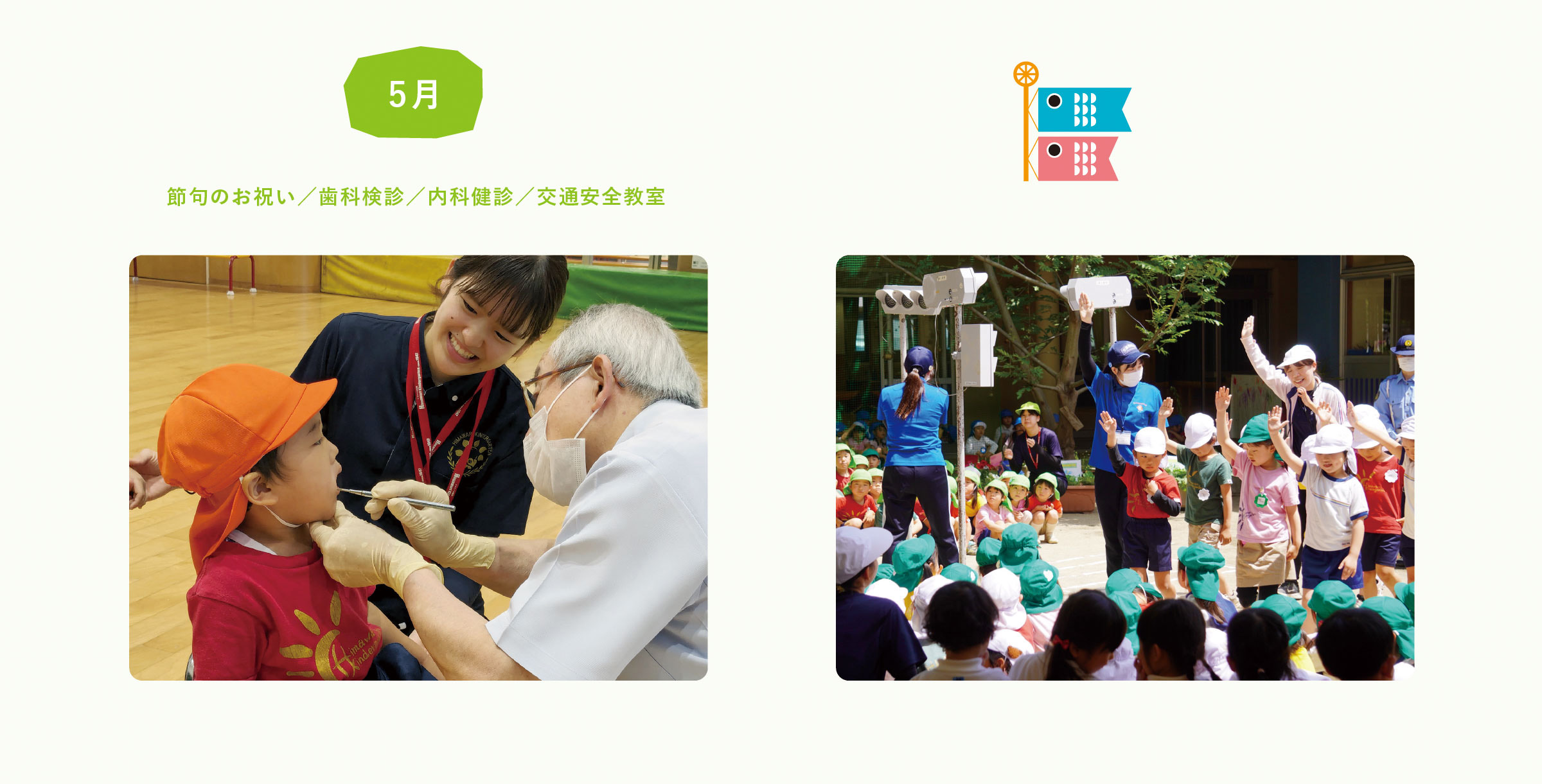 また、「保育参観」など様々な行事を通して、お子さんの様子をご覧いただく機会も設けてご理解いただいております。
