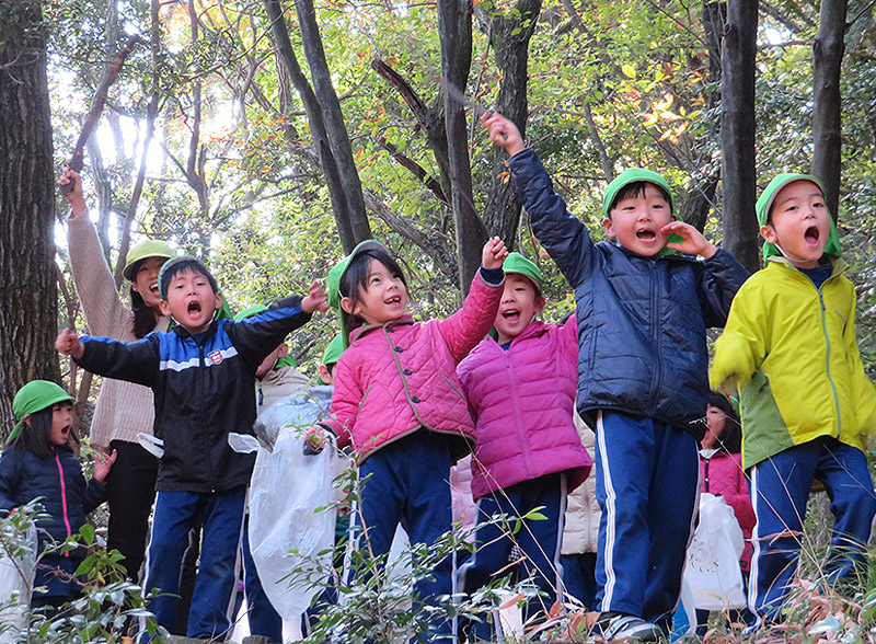 四季を通じ、園外(大分川、平和公園、高尾山公園)などへ出かけます。春の草花、夏の昆虫、秋の落ち葉やどんぐりなど、自然物にふれて感性を育てていきます。